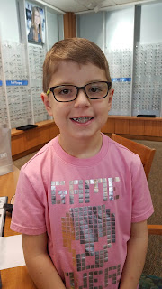 Jackson got glasses to wear during school and when reading... This is the first week he's worn them to school and he's still getting used to them...